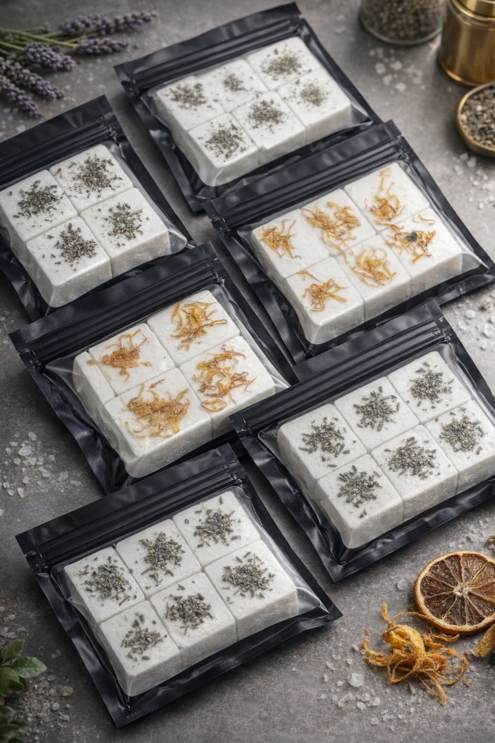 Hoe te gebruiken: Een Douche Steamer Blok (Shower Steamer) op de vloer van je douche leggen in de hoek waar het MINSTE water komt (een steamer heeft druppeltjes nodig om te reageren), water aanzetten en genieten.